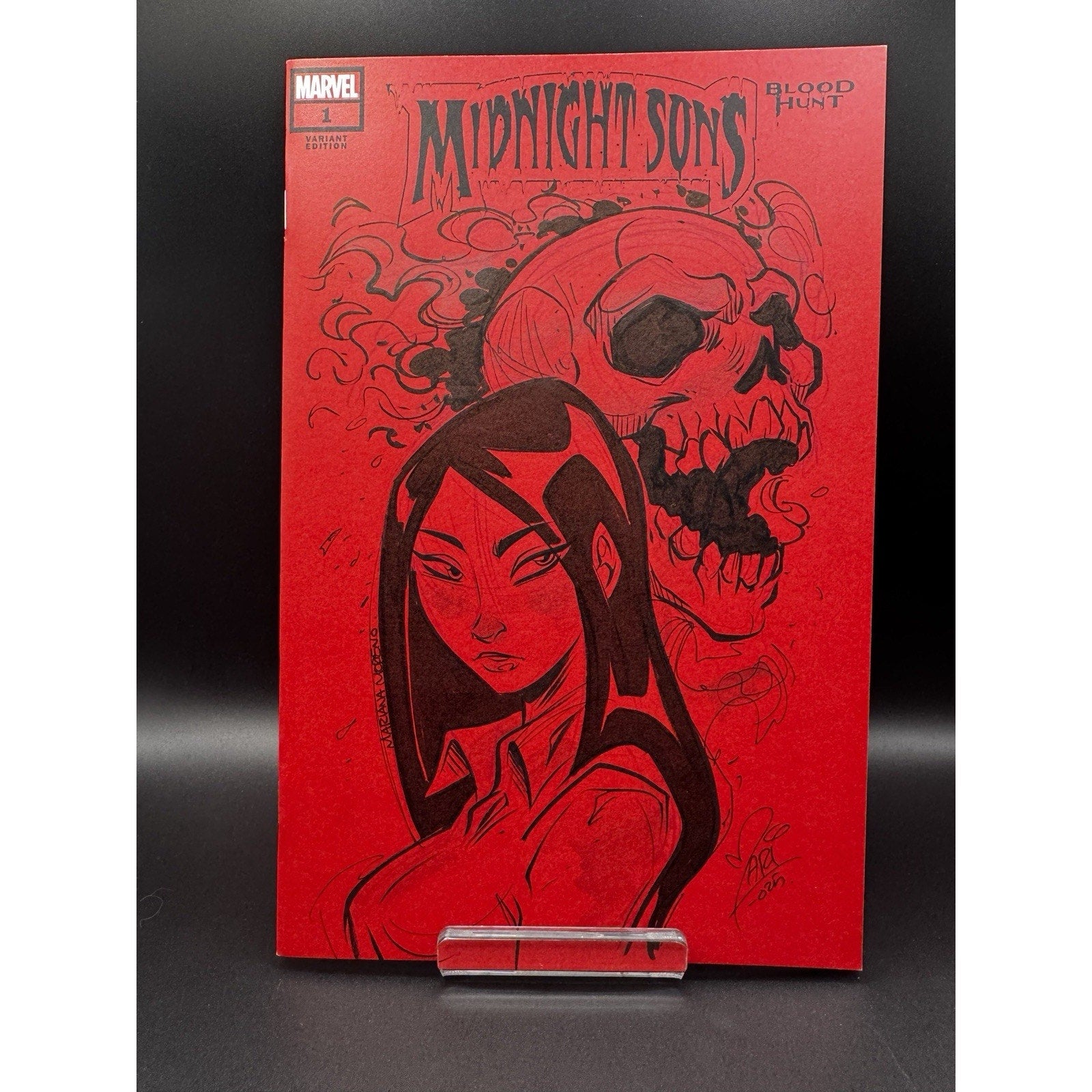 Midnight Sons Blood Hunt #1 Blank Cover Sketch & Signed By Mariana Moreno w/ COA